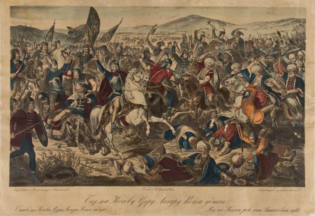 În tradiția sârbească, bătălia de la Kosovo Polje a fost văzută ca o luptă eroică a națiunii sârbe împotriva invaziei otomane, având un simbolism adânc religios și național. Principalele surse sârbești care documentează acest conflict sunt cronici scrise la decenii după eveniment, iar multe dintre acestea sunt influențate de mitologia națională și de simbolismul religios ortodox.