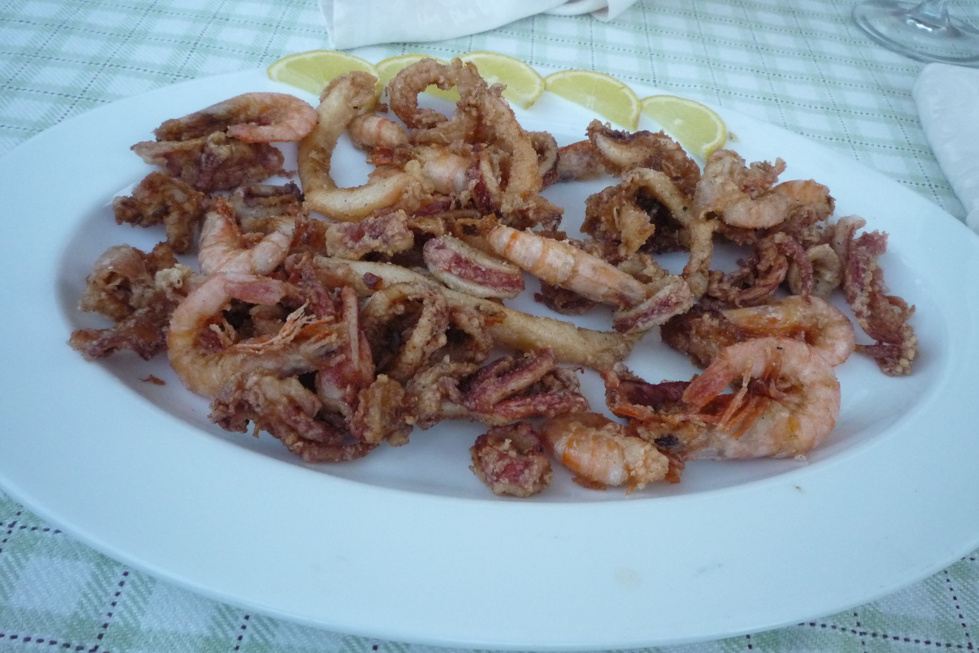 Fructe de mare, proaspete, trase în unt de casă, însoțite de felii de lămâi și vin alb sec, rece