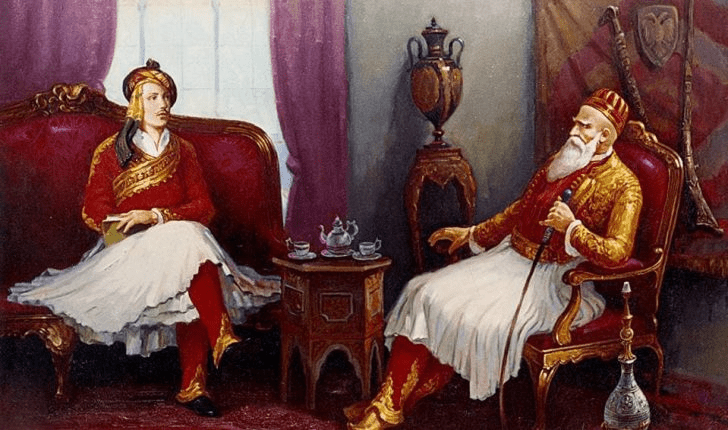 „Deci… acesta este poetul blond din Albion despre care am tot auzit,” rosti Ali Pașa, așezat pe divanul său cu perne de brocart si cu o pipa de chihlimbar între degete. Avea o privire ascuțită, de vultur bătrân, barba lunga, alba, și un chip brăzdat de ani. Pe lângă el, doi scribi notau totul, iar un tălmaci se înclina adânc.